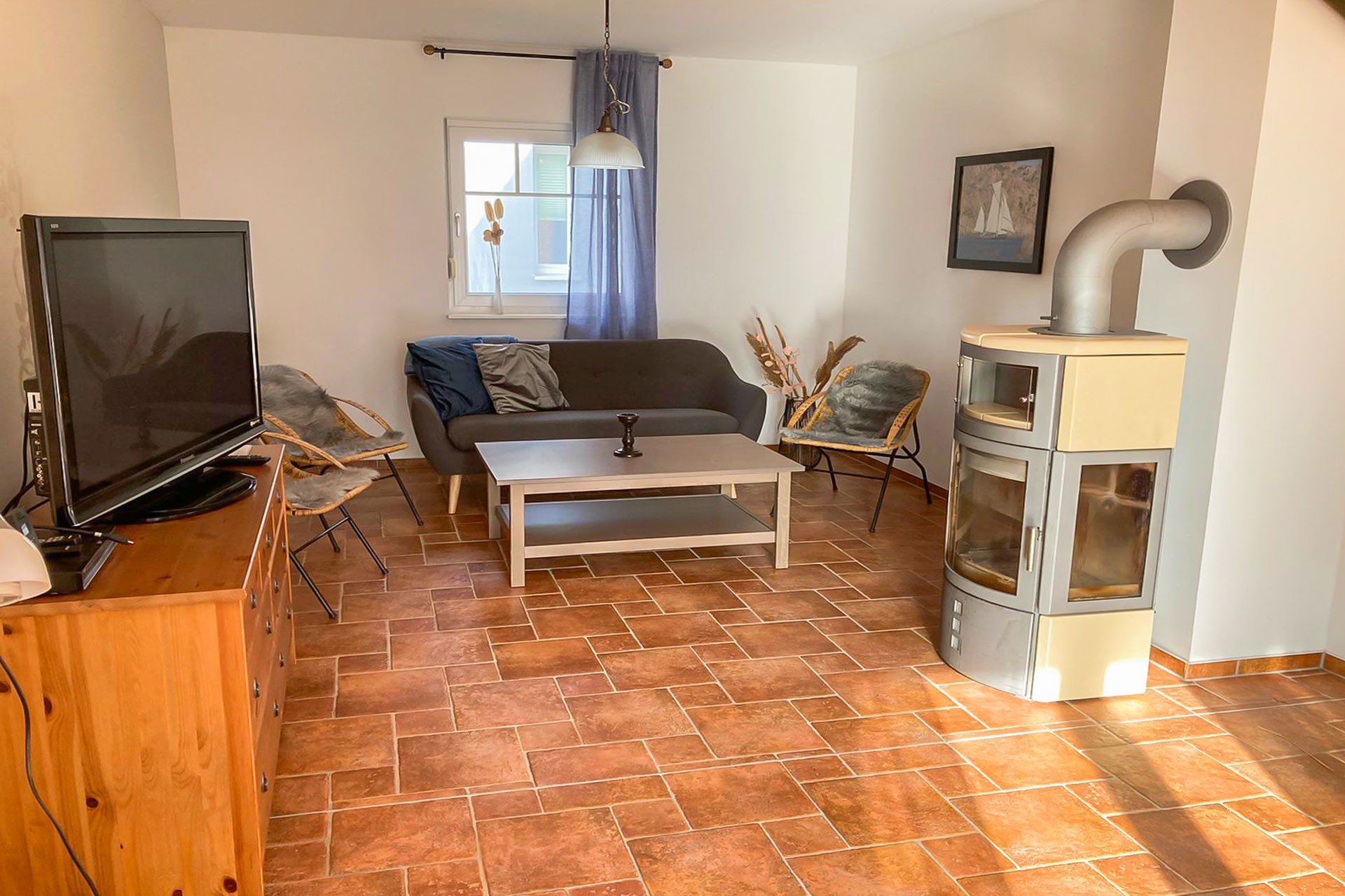 Auch in den etwas kälteren Jahreszeiten sorgt der Kaminofen für romantische Wärme.