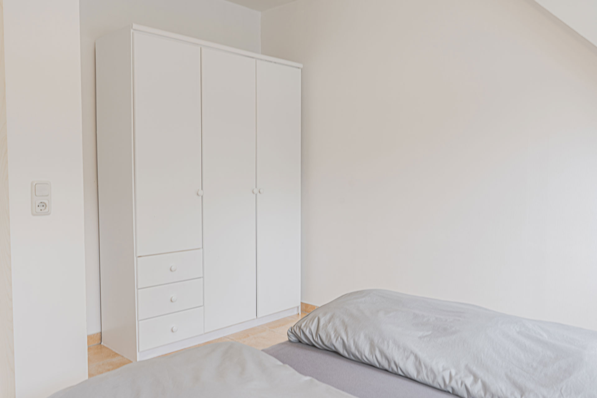 Alle der drei Schlafzimmer sind mit Doppelbetten und großem Kleiderschrank eingerichtet.
