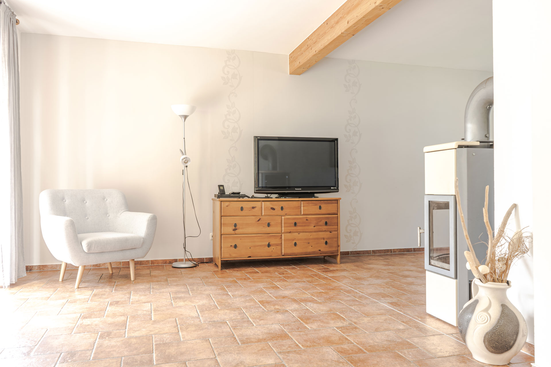 Auch in den etwas kälteren Jahreszeiten sorgt der Kaminofen für romantische Wärme.
