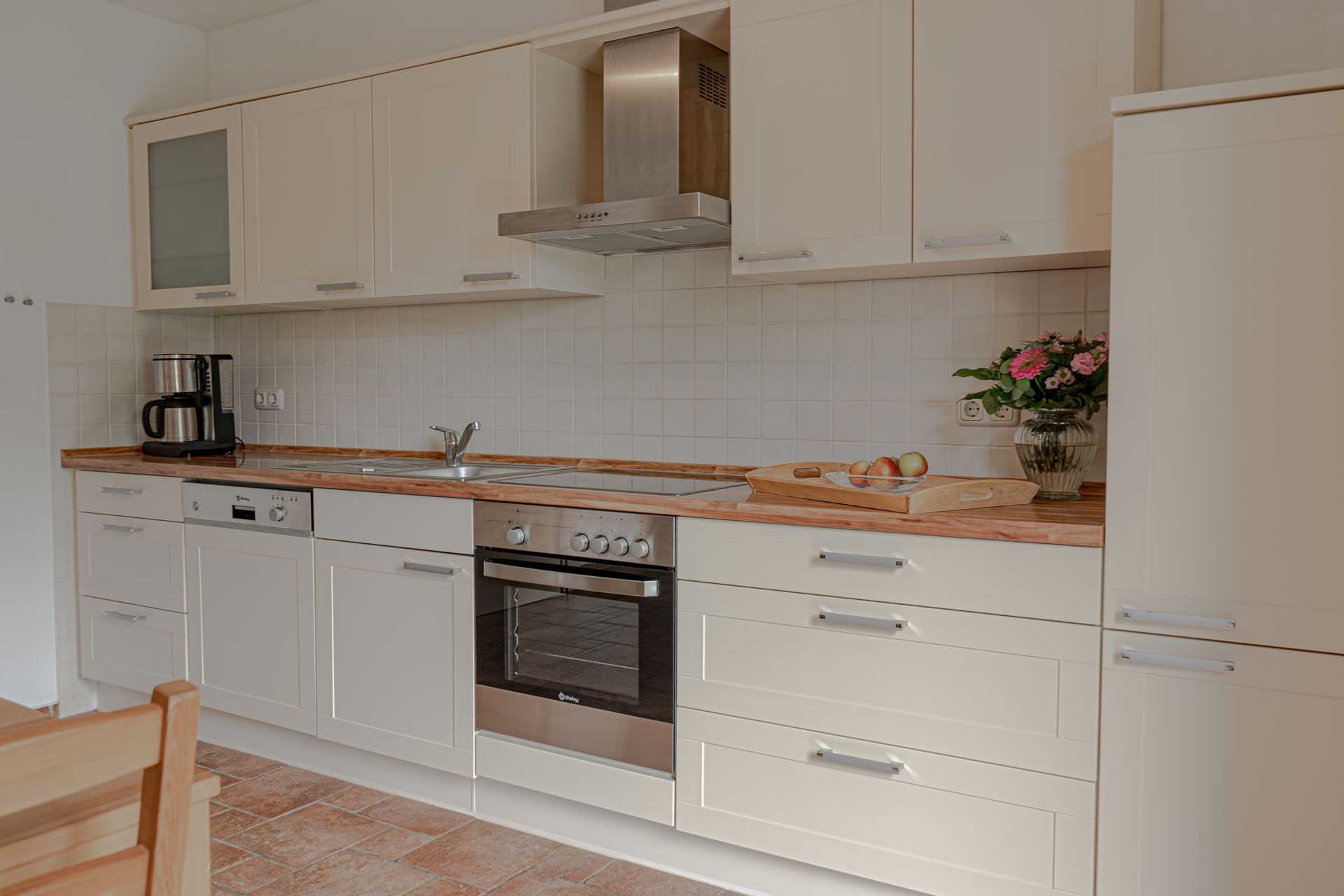 Die gut ausgestattete und separate Küche bietet Ihnen genügend Platz zum gemeinsamen Zubereiten der Mahlzeiten.