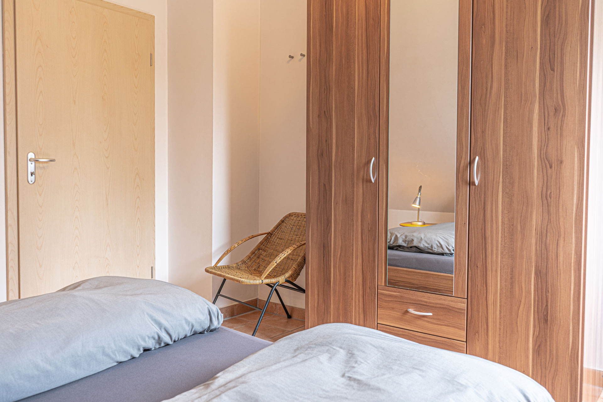 Alle der drei Schlafzimmer sind mit Doppelbetten und großem Kleiderschrank eingerichtet.